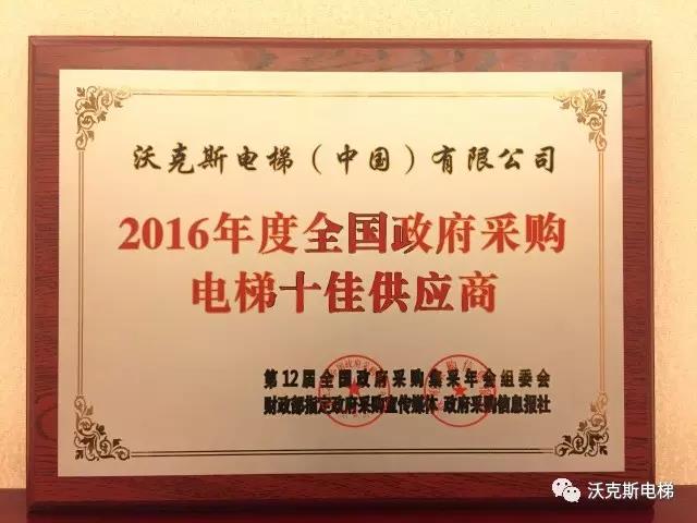 沃克斯平博官方(中国)总部荣获“2016年度全国政府采购十佳平博官方(中国)总部